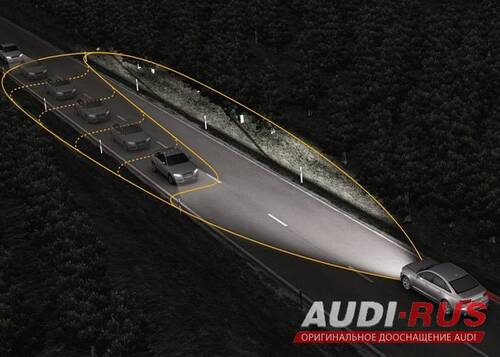 Ассистент переключения дальнего света на Audi A6 позволяет, во время движения за городом, не отвлекаться на переключение дальнего света при приближении встречного автомобиля.